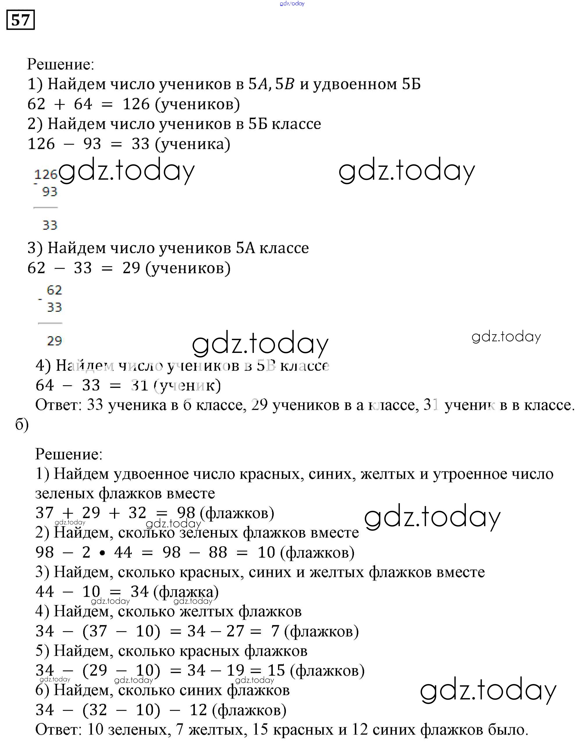 Ответы к Решение к упражнениям 57 Задачнику по Математике для 5 класса Бунимович Просвещение Сферы 2015