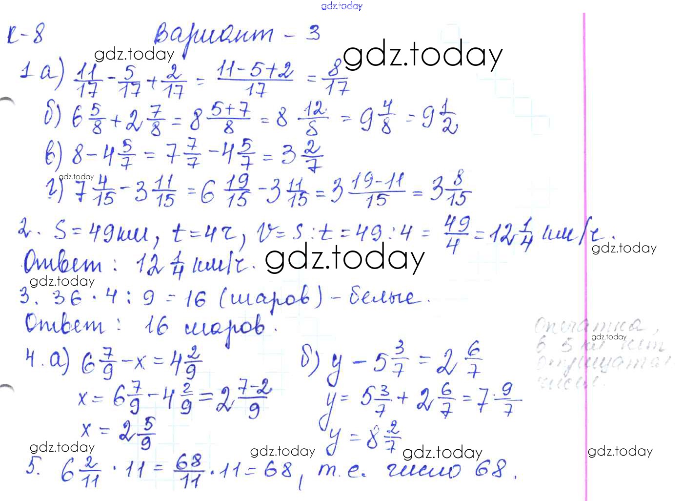 На страницах сайта gdz.today вы найдете учебный и вспомогательный материал, направленный на улучшения знаний школьной программы. ГДЗ - онлайн мир знаний Решение к КР-8. Варианты 3 Контрольным работам по Математике для 5 класса Жохов, Крайнева Мнемозина 2012