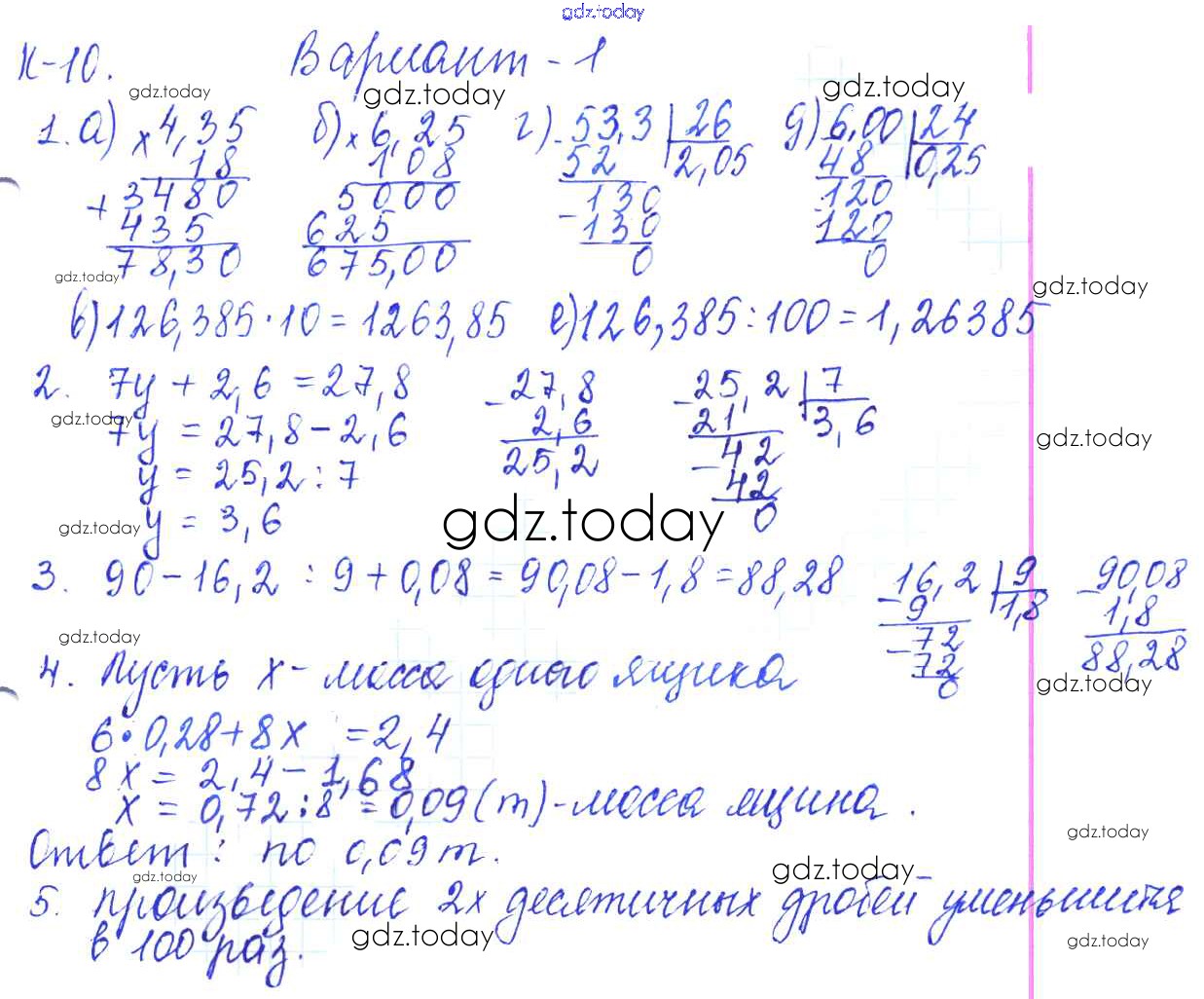 На страницах сайта gdz.today вы найдете учебный и вспомогательный материал, направленный на улучшения знаний школьной программы. ГДЗ - онлайн мир знаний Решение к КР-10. Варианты 1 Контрольным работам по Математике для 5 класса Жохов, Крайнева Мнемозина 2012