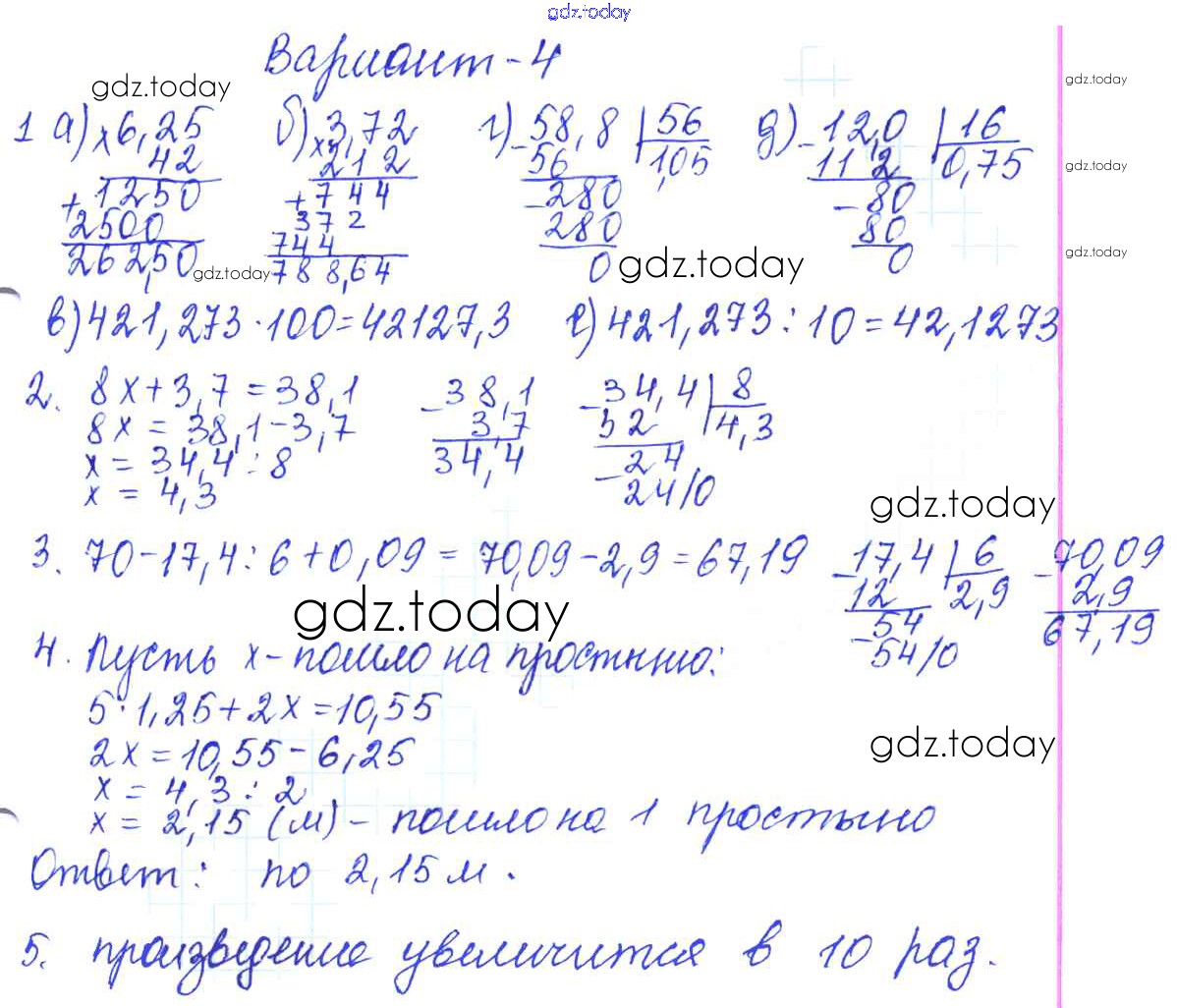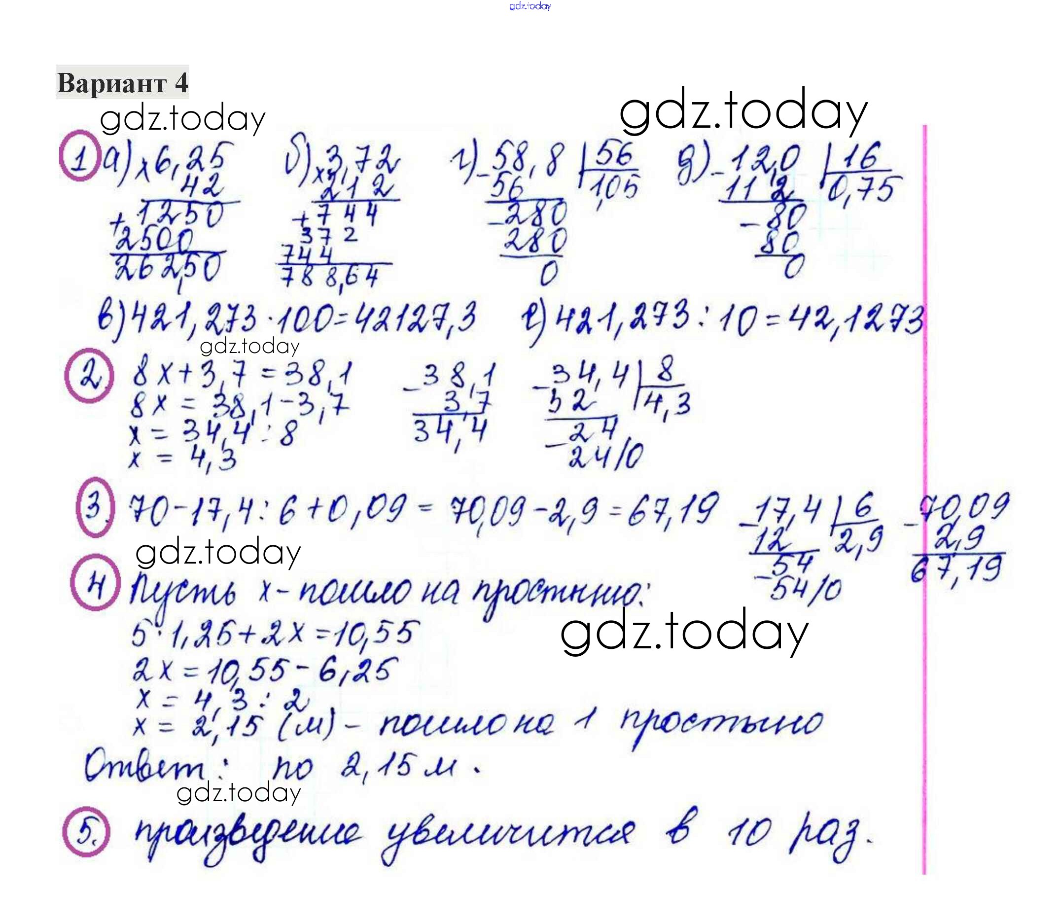 На страницах сайта gdz.today вы найдете учебный и вспомогательный материал, направленный на улучшения знаний школьной программы. ГДЗ - онлайн мир знаний Решение к КР-10. Варианты 4 Контрольным работам по Математике для 5 класса Жохов, Крайнева Мнемозина 2012