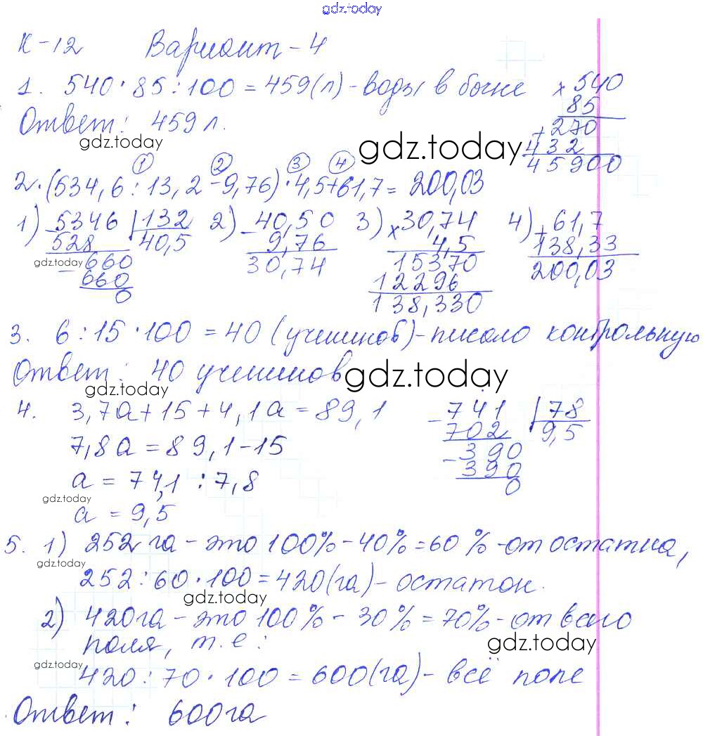На страницах сайта gdz.today вы найдете учебный и вспомогательный материал, направленный на улучшения знаний школьной программы. ГДЗ - онлайн мир знаний Решение к КР-12. Варианты 4 Контрольным работам по Математике для 5 класса Жохов, Крайнева Мнемозина 2012
