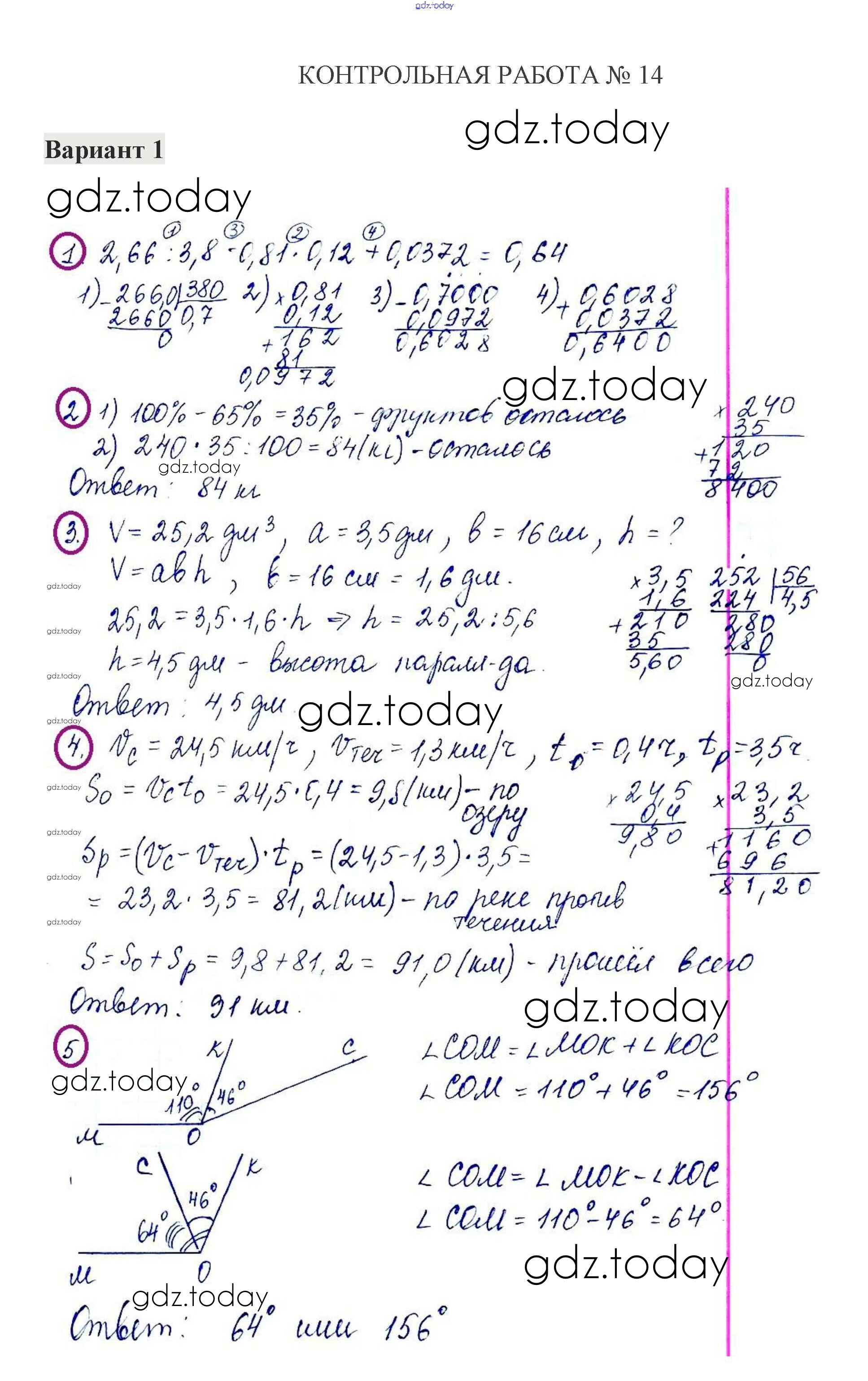 На страницах сайта gdz.today вы найдете учебный и вспомогательный материал, направленный на улучшения знаний школьной программы. ГДЗ - онлайн мир знаний Решение к КР-14. Варианты 1 Контрольным работам по Математике для 5 класса Жохов, Крайнева Мнемозина 2012