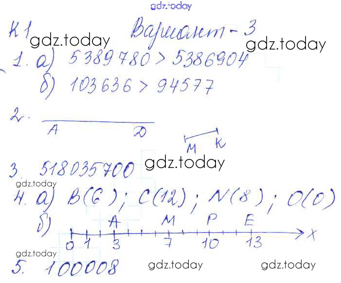 На страницах сайта gdz.today вы найдете учебный и вспомогательный материал, направленный на улучшения знаний школьной программы. ГДЗ - онлайн мир знаний Решение к КР-1. Варианты 3 Контрольным работам по Математике для 5 класса Жохов, Крайнева Мнемозина 2012