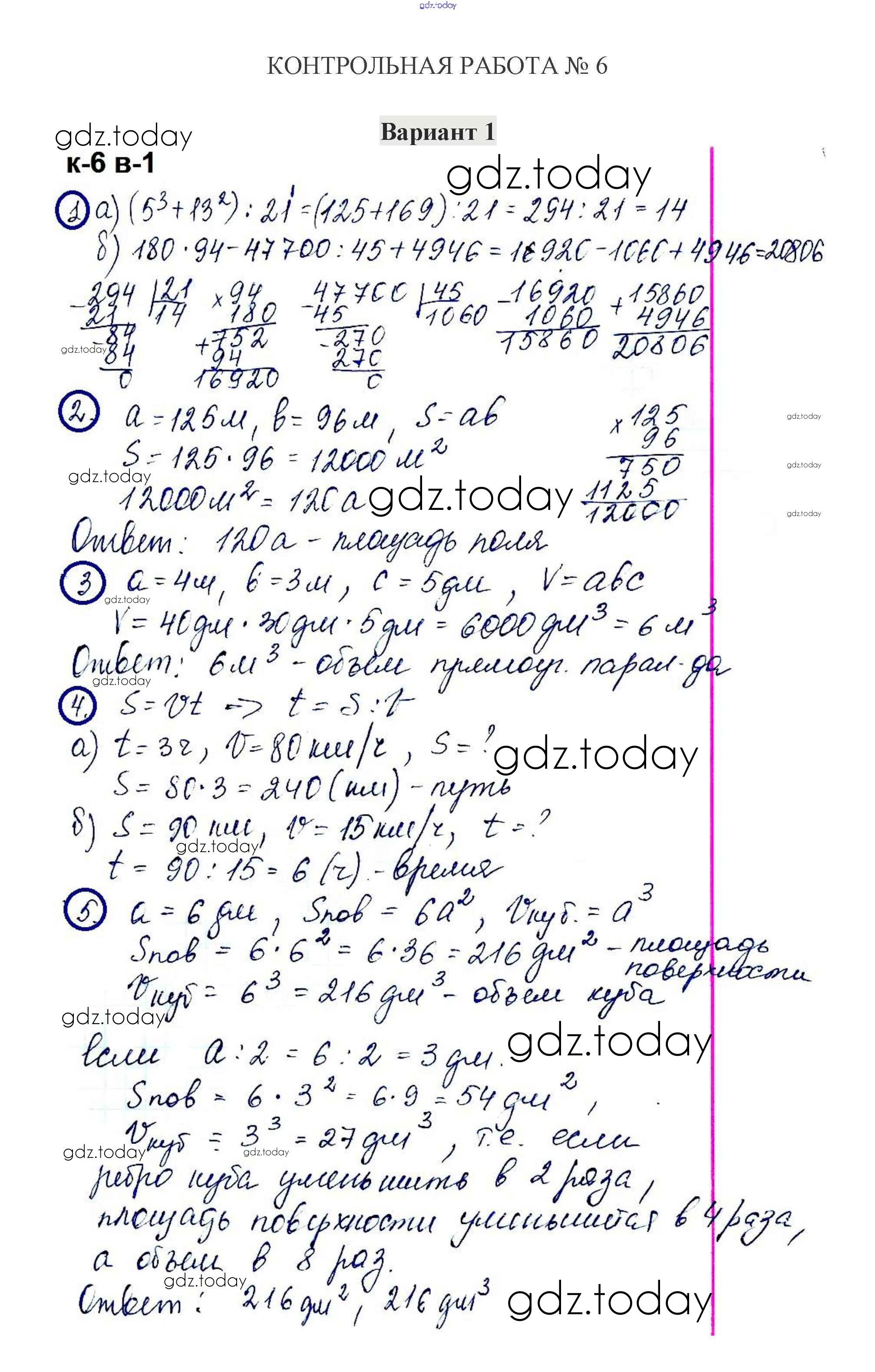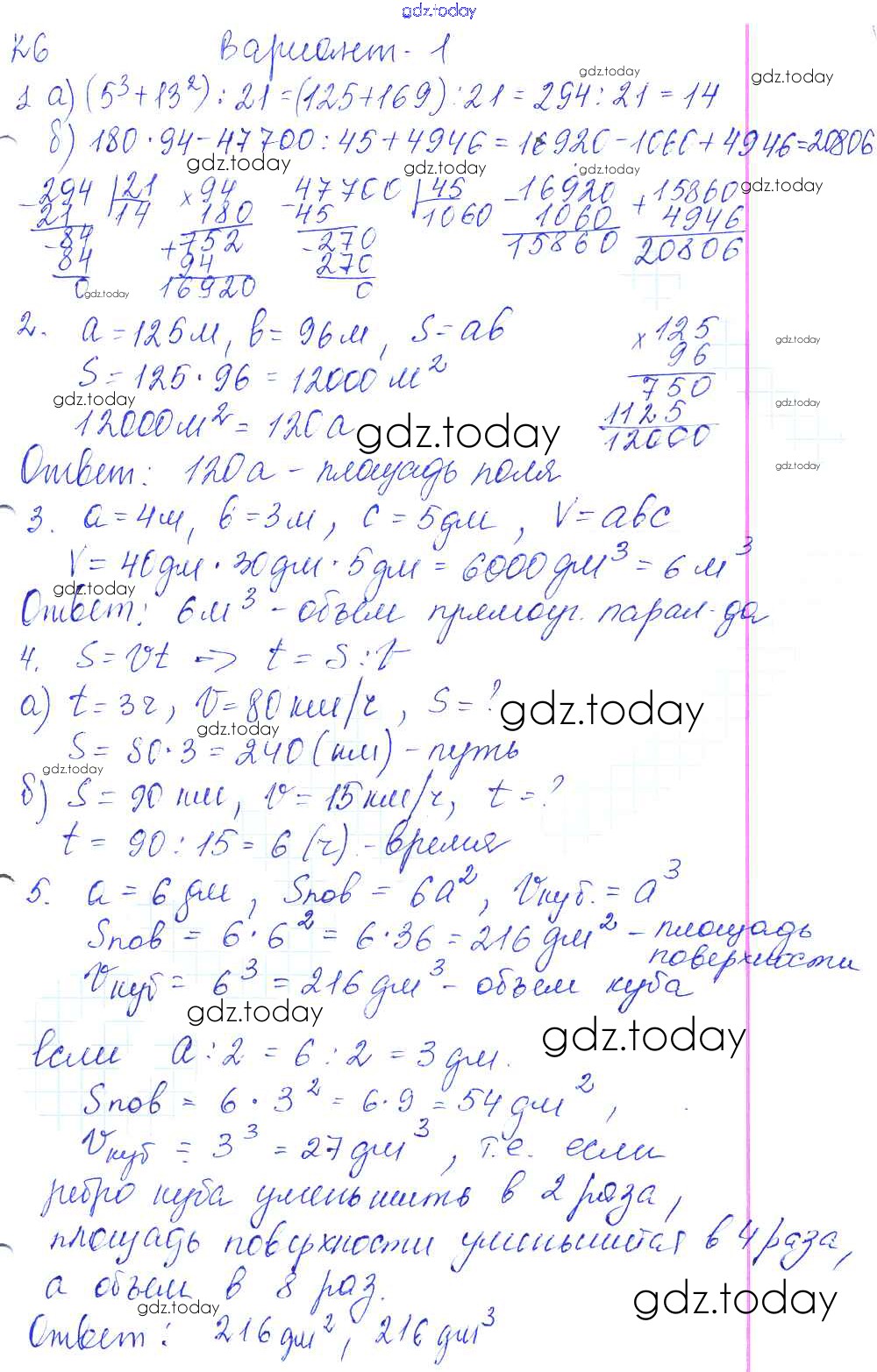 Ответы к Решение к КР-6. Варианты 1 Контрольным работам по Математике для 5 класса Жохов, Крайнева Мнемозина 2012