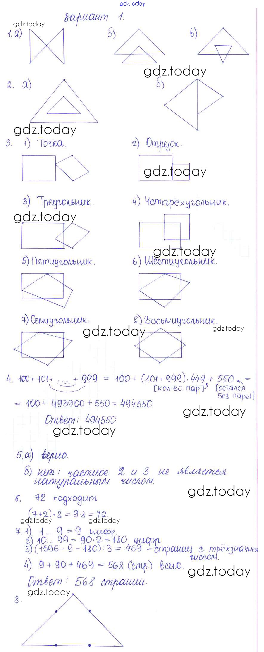 Ответы к СР-4. Варианты Решение к самостоятельным работам 1 Контрольным и самостоятельным работам по Математике для 5 класса Журавлев, Свентковский Экзамен УМК 2015