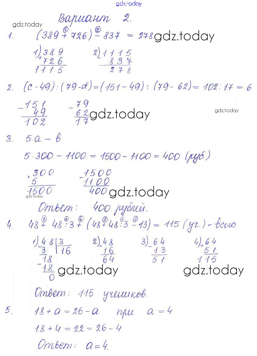 Ответы к СР-8. Варианты Решение к самостоятельным работам 2 Контрольным и самостоятельным работам по Математике для 5 класса Журавлев, Свентковский Экзамен УМК 2015