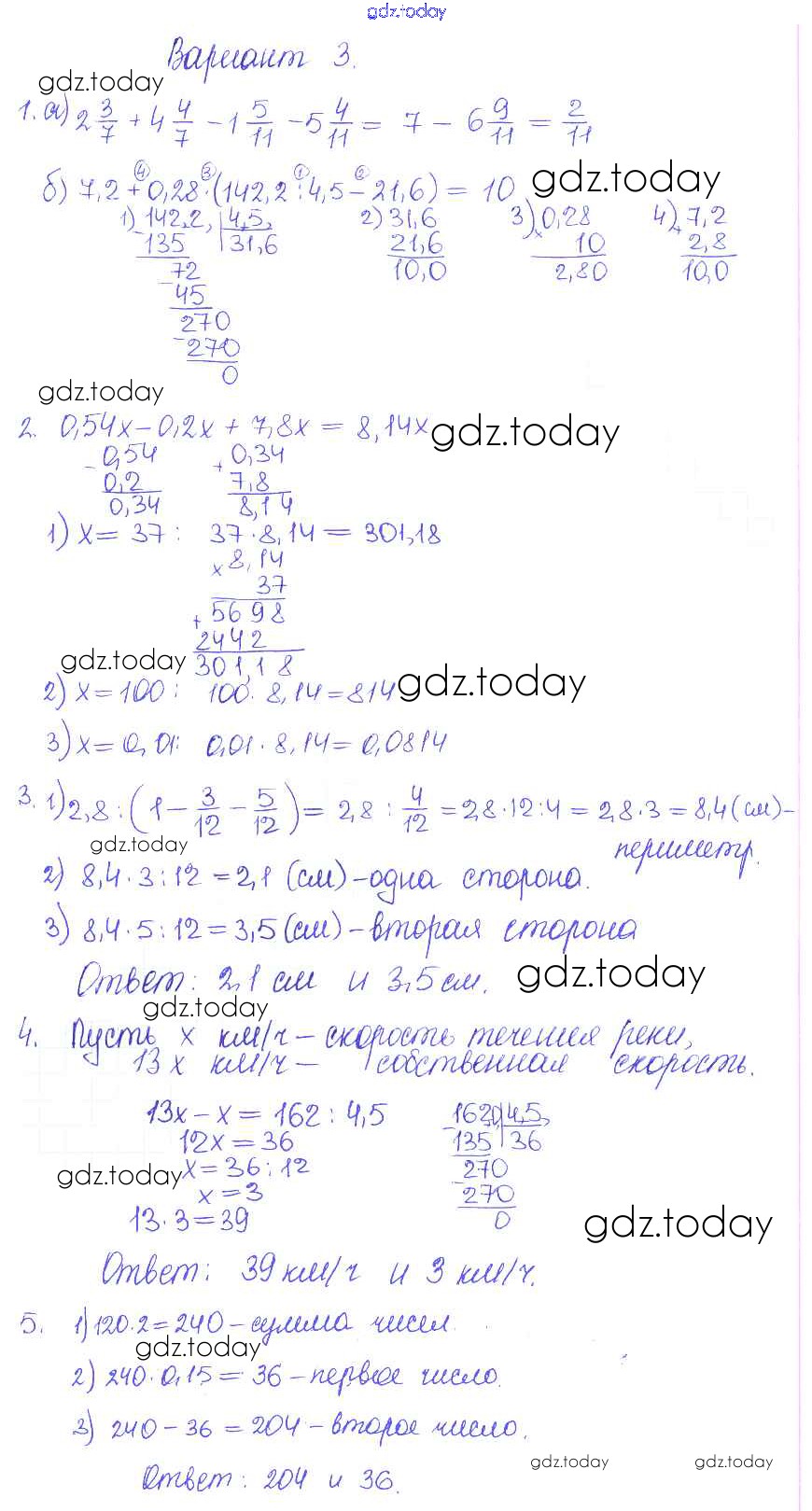 Ответы к КР-14. Варианты Решение к контрольным работам 3 Контрольным и самостоятельным работам по Математике для 5 класса Журавлев, Свентковский Экзамен УМК 2015