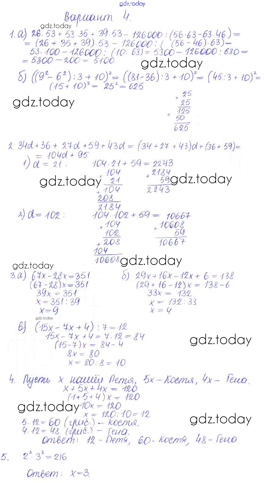 Ответы к КР-5. Варианты Решение к контрольным работам 4 Контрольным и самостоятельным работам по Математике для 5 класса Журавлев, Свентковский Экзамен УМК 2015