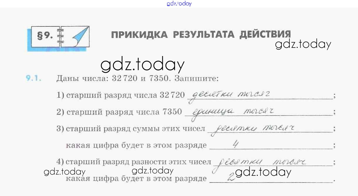 На страницах сайта gdz.today вы найдете учебный и вспомогательный материал, направленный на улучшения знаний школьной программы. ГДЗ - онлайн мир знаний Решение к §9. Прикидка результата действия 1 Рабочей тетради по Математике для 5 класса Зубарева Мнемозина УМК 2014