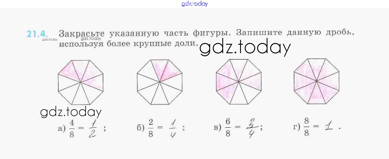 На страницах сайта gdz.today вы найдете учебный и вспомогательный материал, направленный на улучшения знаний школьной программы. ГДЗ - онлайн мир знаний Решение к §21. Основное свойство дроби 4 Рабочей тетради по Математике для 5 класса Зубарева Мнемозина УМК 2014