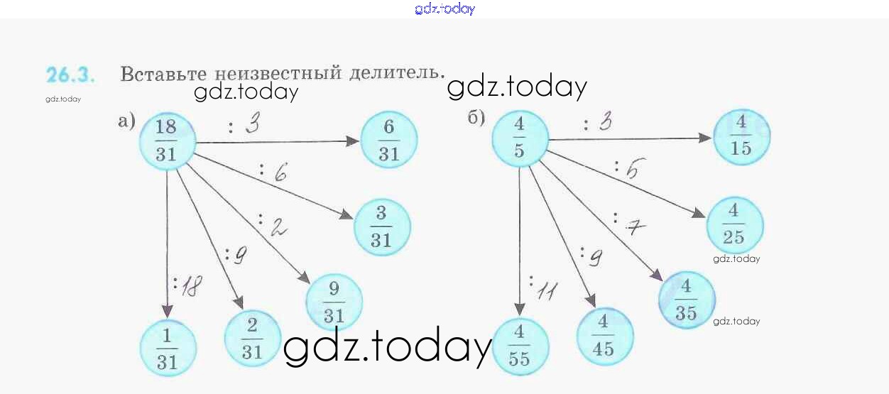 На страницах сайта gdz.today вы найдете учебный и вспомогательный материал, направленный на улучшения знаний школьной программы. ГДЗ - онлайн мир знаний Решение к §26. Умножение и деление обыкновенной дроби на натуральное число 3 Рабочей тетради по Математике для 5 класса Зубарева Мнемозина УМК 2014