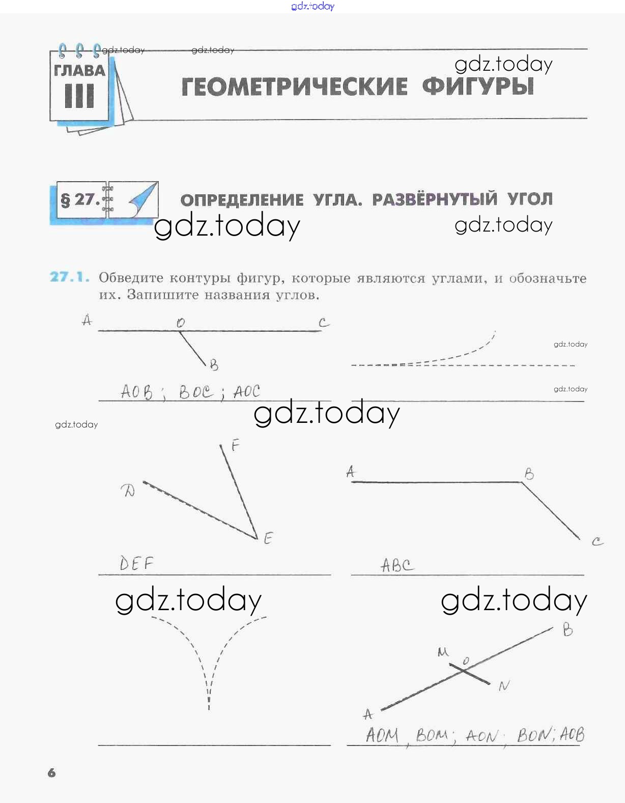 На страницах сайта gdz.today вы найдете учебный и вспомогательный материал, направленный на улучшения знаний школьной программы. ГДЗ - онлайн мир знаний Решение к §27. Определение угла. Развёрнутый угол 1 Рабочей тетради по Математике для 5 класса Зубарева Мнемозина УМК 2014