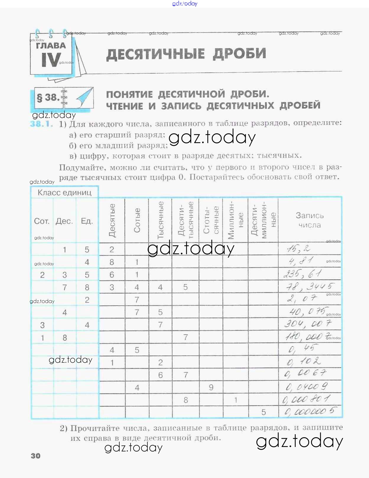 Решение к §38. Понятие десятичной дроби. Чтение и запись десятичных дробей