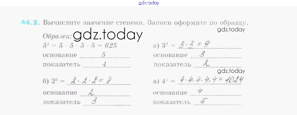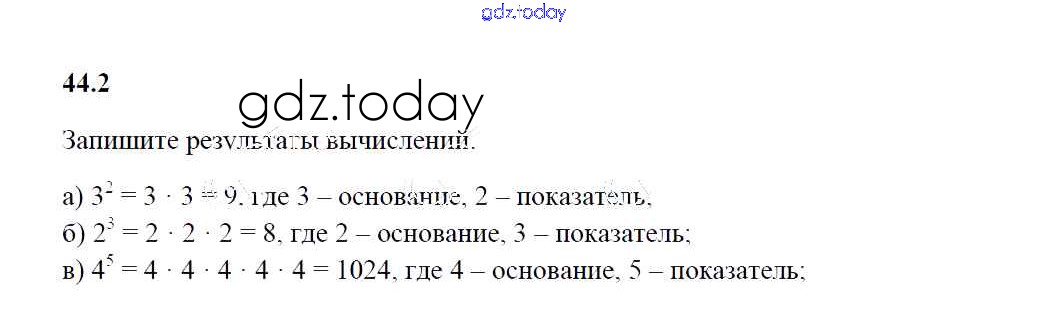 На страницах сайта gdz.today вы найдете учебный и вспомогательный материал, направленный на улучшения знаний школьной программы. ГДЗ - онлайн мир знаний Решение к §44. Степень числа 2 Рабочей тетради по Математике для 5 класса Зубарева Мнемозина УМК 2014