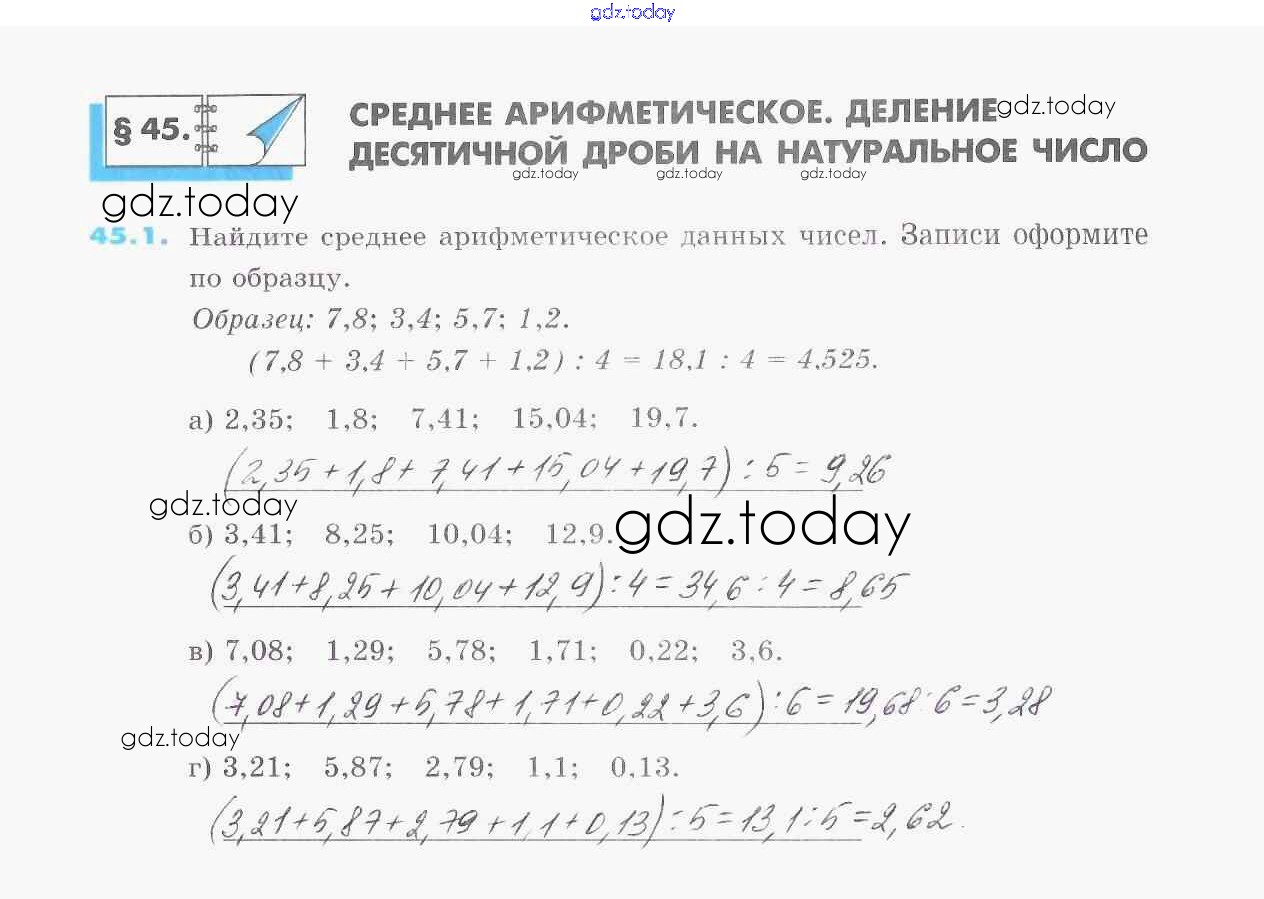 На страницах сайта gdz.today вы найдете учебный и вспомогательный материал, направленный на улучшения знаний школьной программы. ГДЗ - онлайн мир знаний Решение к §45. Среднее арифметическое. Деление десятичной дроби на натуральное число 1 Рабочей тетради по Математике для 5 класса Зубарева Мнемозина УМК 2014