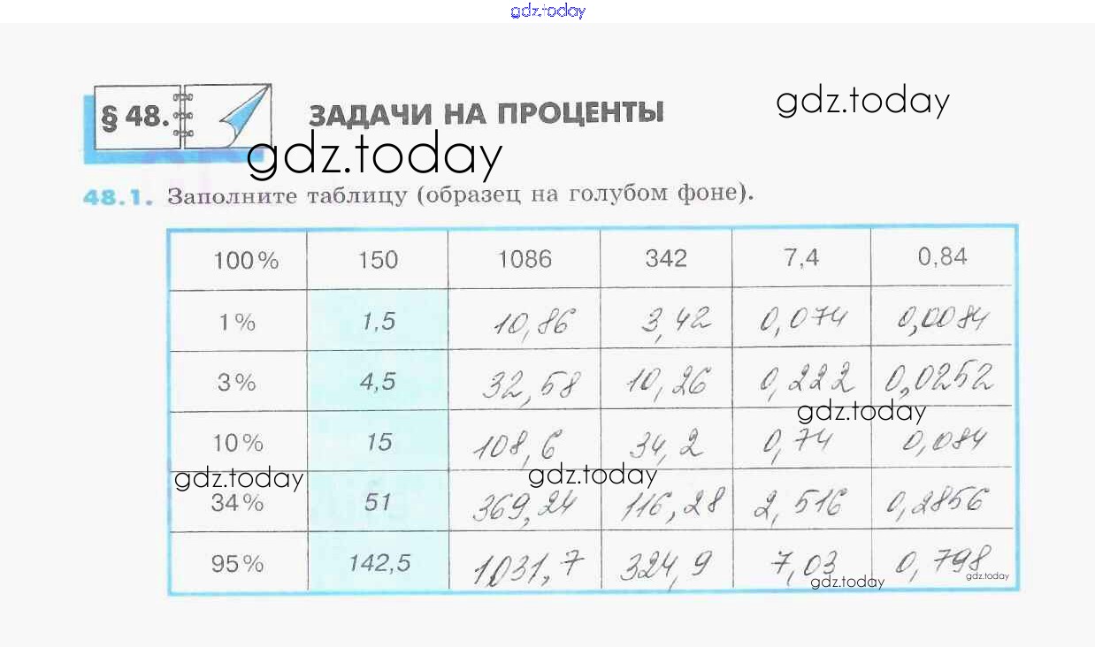 На страницах сайта gdz.today вы найдете учебный и вспомогательный материал, направленный на улучшения знаний школьной программы. ГДЗ - онлайн мир знаний Решение к §48. Задачи на проценты 1 Рабочей тетради по Математике для 5 класса Зубарева Мнемозина УМК 2014