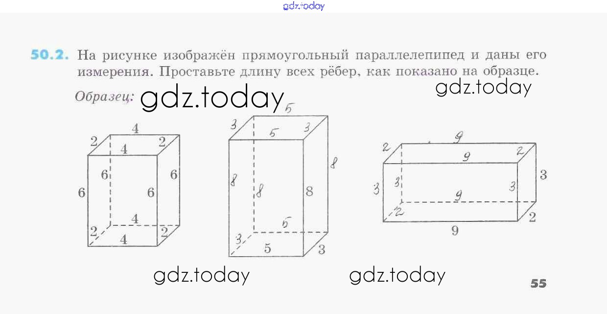 На страницах сайта gdz.today вы найдете учебный и вспомогательный материал, направленный на улучшения знаний школьной программы. ГДЗ - онлайн мир знаний Решение к §50. Прямоугольный параллелепипед 2 Рабочей тетради по Математике для 5 класса Зубарева Мнемозина УМК 2014