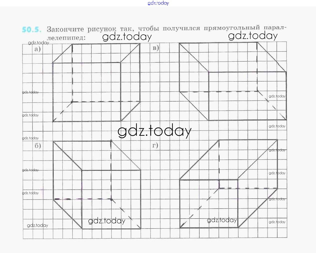 На страницах сайта gdz.today вы найдете учебный и вспомогательный материал, направленный на улучшения знаний школьной программы. ГДЗ - онлайн мир знаний Решение к §50. Прямоугольный параллелепипед 5 Рабочей тетради по Математике для 5 класса Зубарева Мнемозина УМК 2014