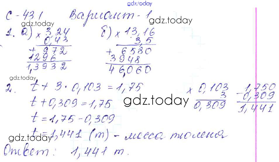 На страницах сайта gdz.today вы найдете учебный и вспомогательный материал, направленный на улучшения знаний школьной программы. ГДЗ - онлайн мир знаний Решение к СР-43.1 1 Самостоятельным работам по Математике для 5 класса Зубарева, Шанцева Мнемозина 2016