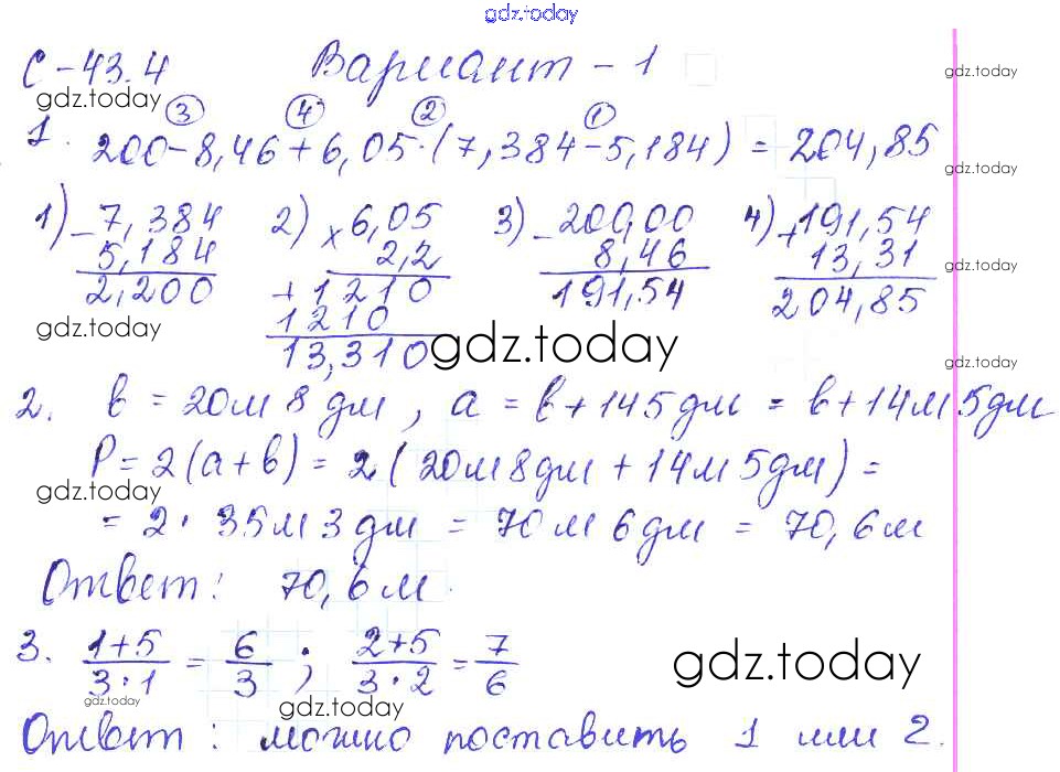 На страницах сайта gdz.today вы найдете учебный и вспомогательный материал, направленный на улучшения знаний школьной программы. ГДЗ - онлайн мир знаний Решение к СР-43.4 1 Самостоятельным работам по Математике для 5 класса Зубарева, Шанцева Мнемозина 2016