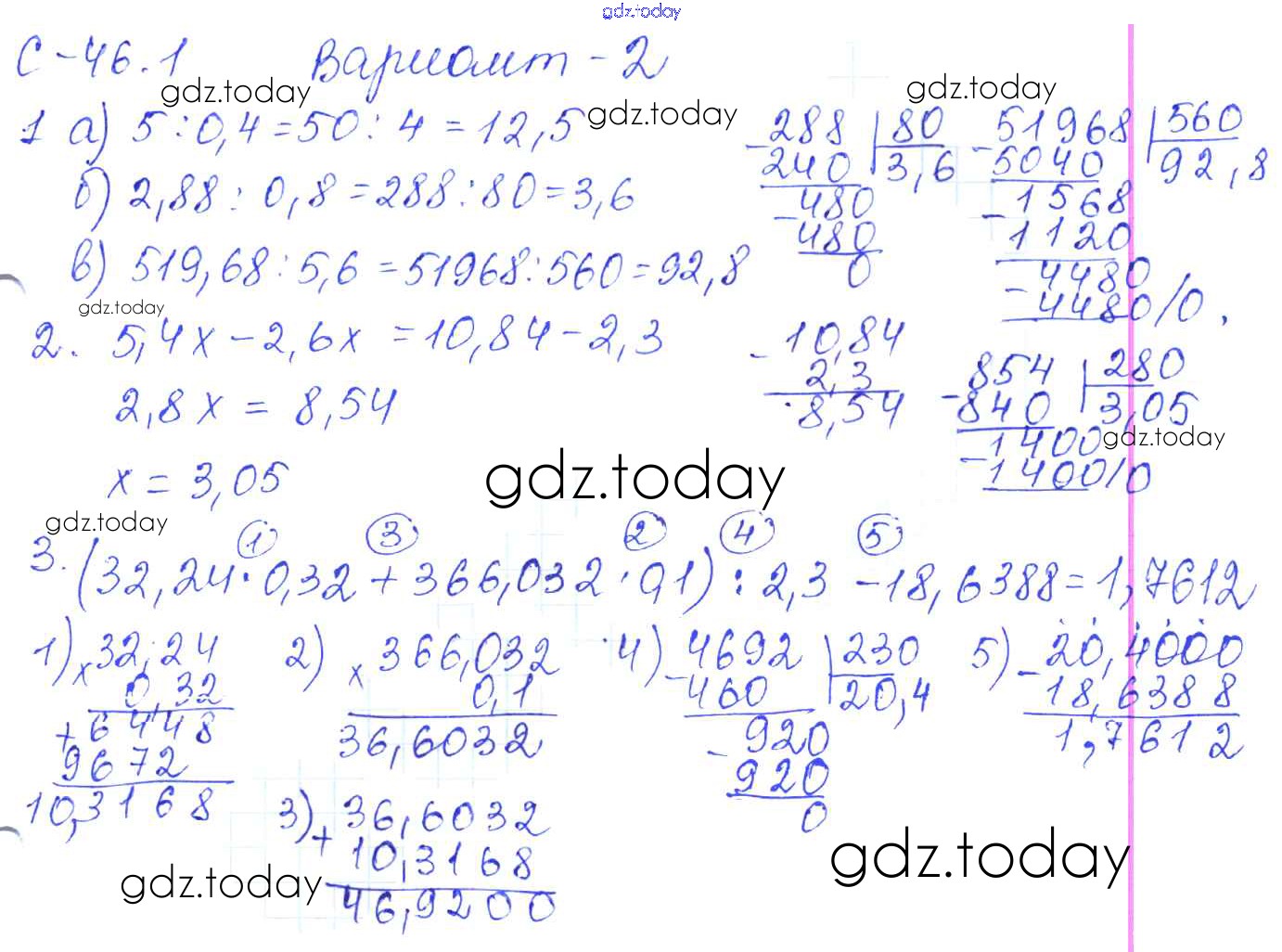 На страницах сайта gdz.today вы найдете учебный и вспомогательный материал, направленный на улучшения знаний школьной программы. ГДЗ - онлайн мир знаний Решение к СР-46.1 2 Самостоятельным работам по Математике для 5 класса Зубарева, Шанцева Мнемозина 2016