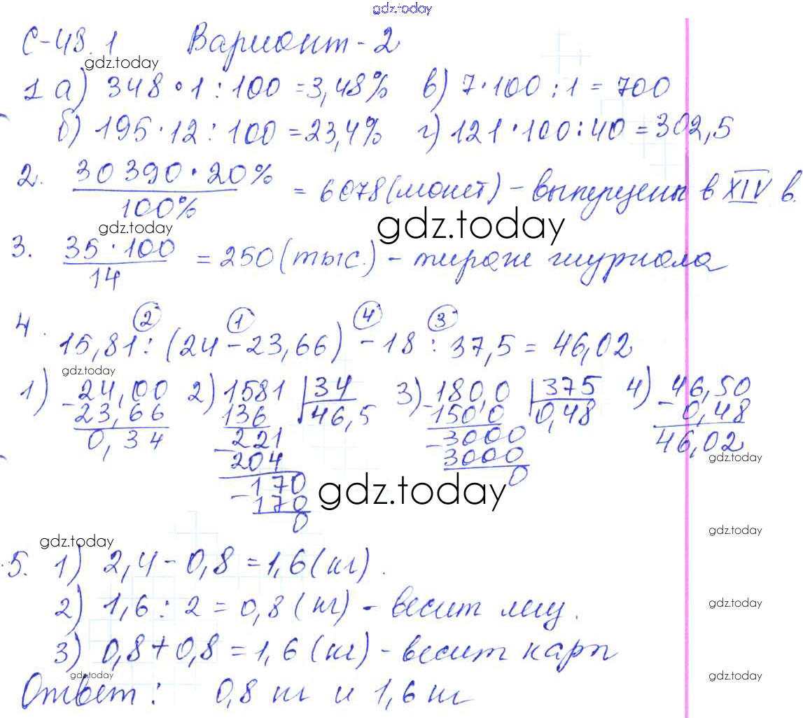 На страницах сайта gdz.today вы найдете учебный и вспомогательный материал, направленный на улучшения знаний школьной программы. ГДЗ - онлайн мир знаний Решение к СР-48.1 2 Самостоятельным работам по Математике для 5 класса Зубарева, Шанцева Мнемозина 2016