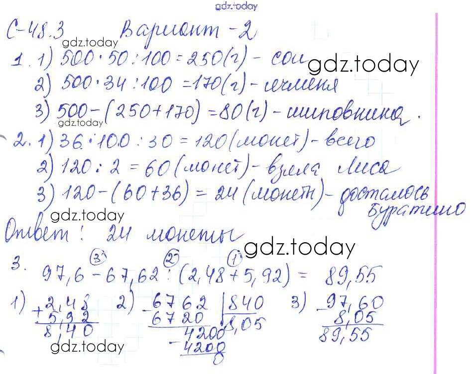 На страницах сайта gdz.today вы найдете учебный и вспомогательный материал, направленный на улучшения знаний школьной программы. ГДЗ - онлайн мир знаний Решение к СР-48.3 2 Самостоятельным работам по Математике для 5 класса Зубарева, Шанцева Мнемозина 2016