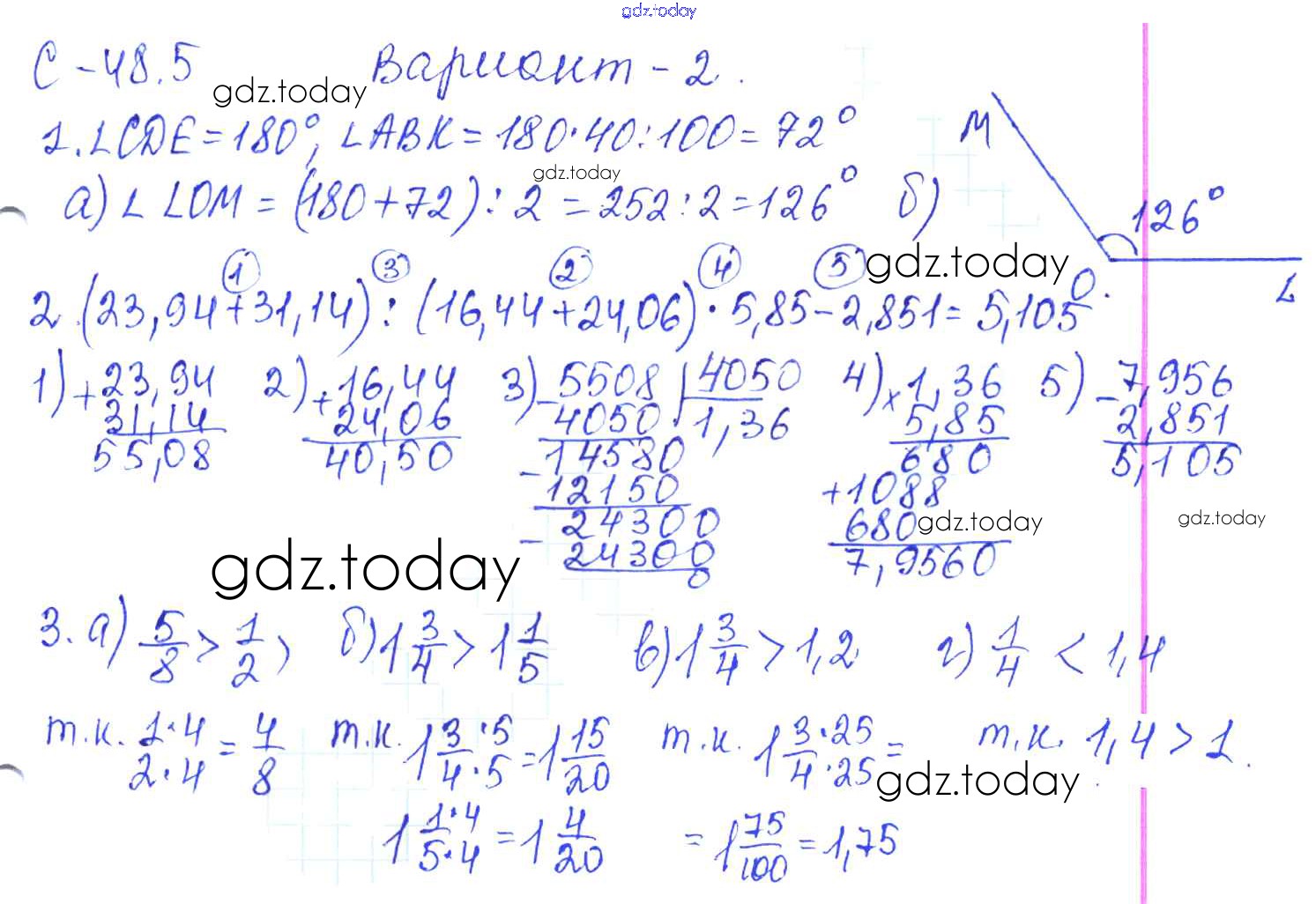 На страницах сайта gdz.today вы найдете учебный и вспомогательный материал, направленный на улучшения знаний школьной программы. ГДЗ - онлайн мир знаний Решение к СР-48.5 2 Самостоятельным работам по Математике для 5 класса Зубарева, Шанцева Мнемозина 2016