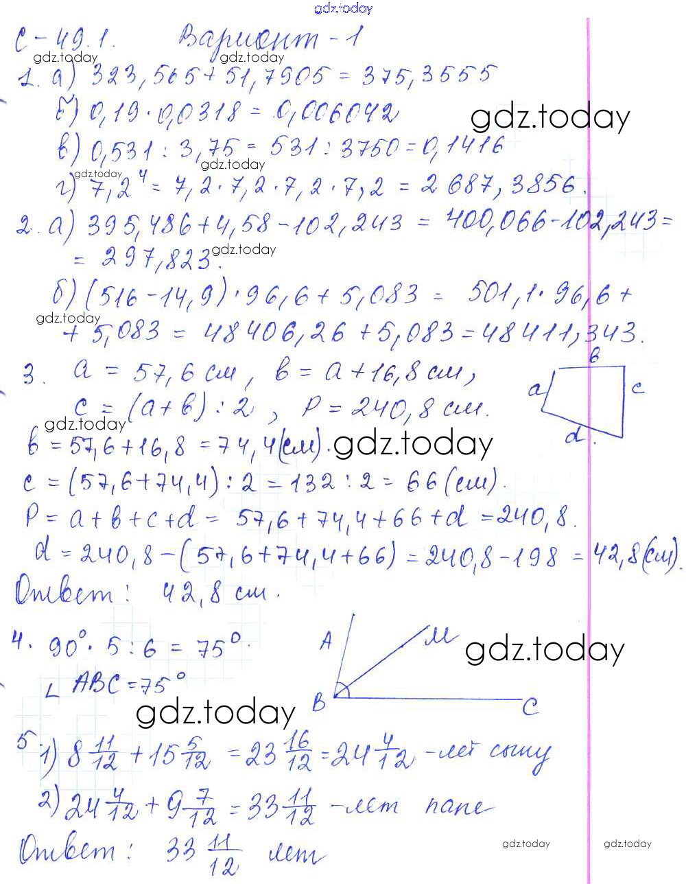 На страницах сайта gdz.today вы найдете учебный и вспомогательный материал, направленный на улучшения знаний школьной программы. ГДЗ - онлайн мир знаний Решение к СР-49.1 1 Самостоятельным работам по Математике для 5 класса Зубарева, Шанцева Мнемозина 2016