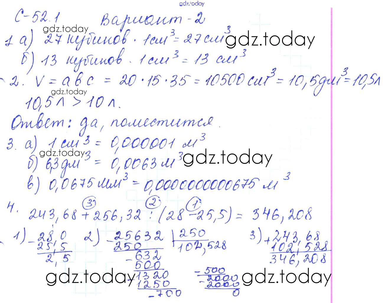 На страницах сайта gdz.today вы найдете учебный и вспомогательный материал, направленный на улучшения знаний школьной программы. ГДЗ - онлайн мир знаний Решение к СР-52.1 2 Самостоятельным работам по Математике для 5 класса Зубарева, Шанцева Мнемозина 2016
