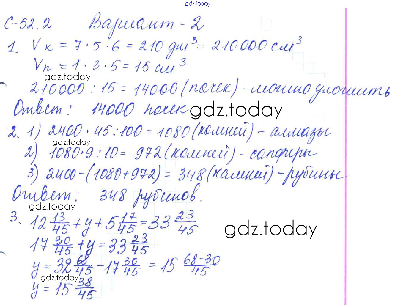 Ответы к Решение к СР-52.2 2 Самостоятельным работам по Математике для 5 класса Зубарева, Шанцева Мнемозина 2016