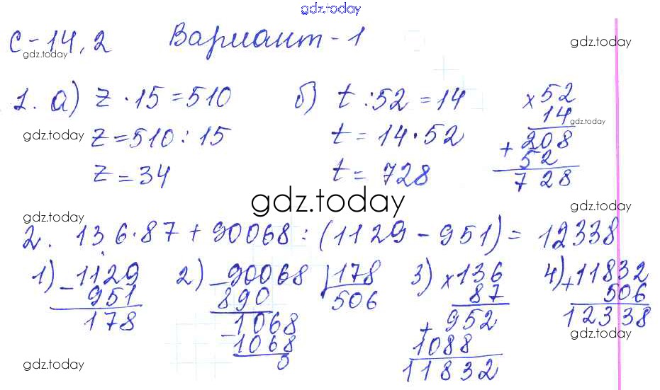 На страницах сайта gdz.today вы найдете учебный и вспомогательный материал, направленный на улучшения знаний школьной программы. ГДЗ - онлайн мир знаний Решение к СР-14.2 1 Самостоятельным работам по Математике для 5 класса Зубарева, Шанцева Мнемозина 2016