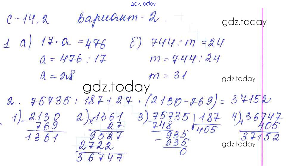 На страницах сайта gdz.today вы найдете учебный и вспомогательный материал, направленный на улучшения знаний школьной программы. ГДЗ - онлайн мир знаний Решение к СР-14.2 2 Самостоятельным работам по Математике для 5 класса Зубарева, Шанцева Мнемозина 2016