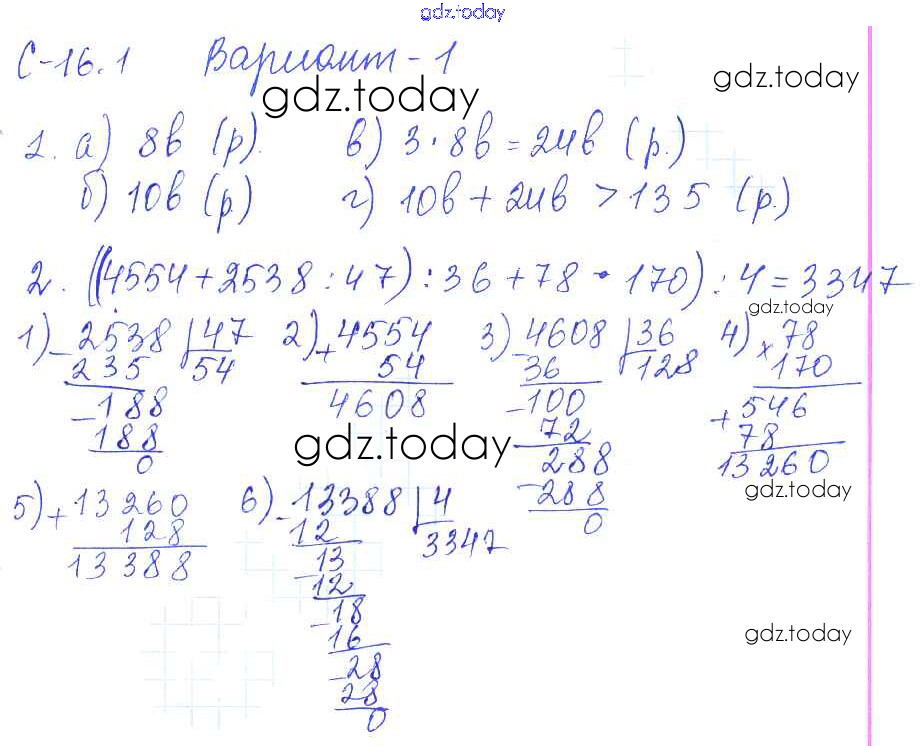 На страницах сайта gdz.today вы найдете учебный и вспомогательный материал, направленный на улучшения знаний школьной программы. ГДЗ - онлайн мир знаний Решение к СР-16.1 1 Самостоятельным работам по Математике для 5 класса Зубарева, Шанцева Мнемозина 2016