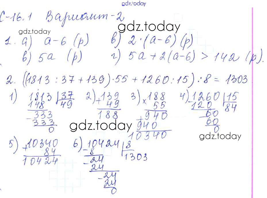 На страницах сайта gdz.today вы найдете учебный и вспомогательный материал, направленный на улучшения знаний школьной программы. ГДЗ - онлайн мир знаний Решение к СР-16.1 2 Самостоятельным работам по Математике для 5 класса Зубарева, Шанцева Мнемозина 2016