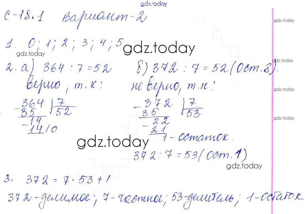 На страницах сайта gdz.today вы найдете учебный и вспомогательный материал, направленный на улучшения знаний школьной программы. ГДЗ - онлайн мир знаний Решение к СР-18.1 2 Самостоятельным работам по Математике для 5 класса Зубарева, Шанцева Мнемозина 2016