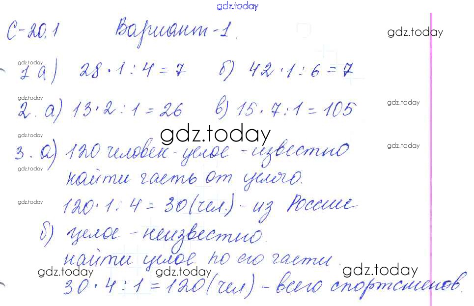На страницах сайта gdz.today вы найдете учебный и вспомогательный материал, направленный на улучшения знаний школьной программы. ГДЗ - онлайн мир знаний Решение к СР-20.1 1 Самостоятельным работам по Математике для 5 класса Зубарева, Шанцева Мнемозина 2016