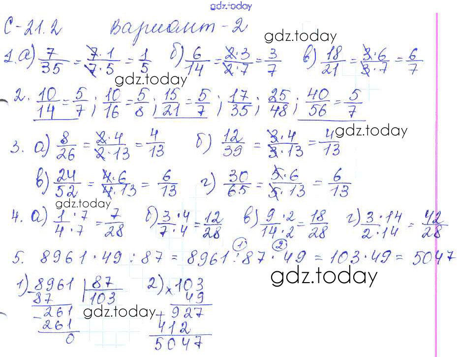 На страницах сайта gdz.today вы найдете учебный и вспомогательный материал, направленный на улучшения знаний школьной программы. ГДЗ - онлайн мир знаний Решение к СР-21.2 2 Самостоятельным работам по Математике для 5 класса Зубарева, Шанцева Мнемозина 2016