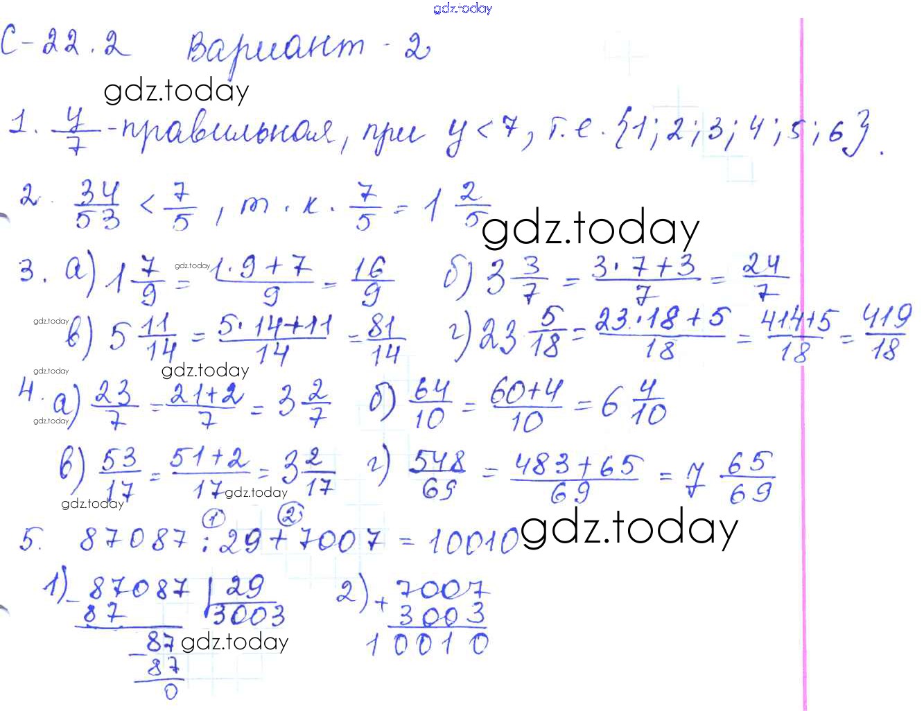 На страницах сайта gdz.today вы найдете учебный и вспомогательный материал, направленный на улучшения знаний школьной программы. ГДЗ - онлайн мир знаний Решение к СР-22.2 2 Самостоятельным работам по Математике для 5 класса Зубарева, Шанцева Мнемозина 2016