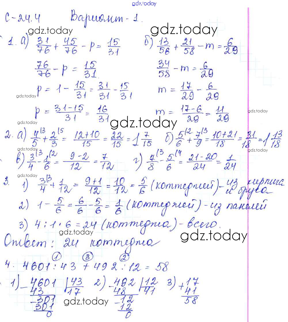 Ответы к Решение к СР-24.4 1 Самостоятельным работам по Математике для 5 класса Зубарева, Шанцева Мнемозина 2016