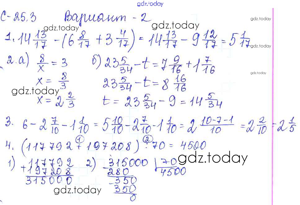 На страницах сайта gdz.today вы найдете учебный и вспомогательный материал, направленный на улучшения знаний школьной программы. ГДЗ - онлайн мир знаний Решение к СР-25.3 2 Самостоятельным работам по Математике для 5 класса Зубарева, Шанцева Мнемозина 2016