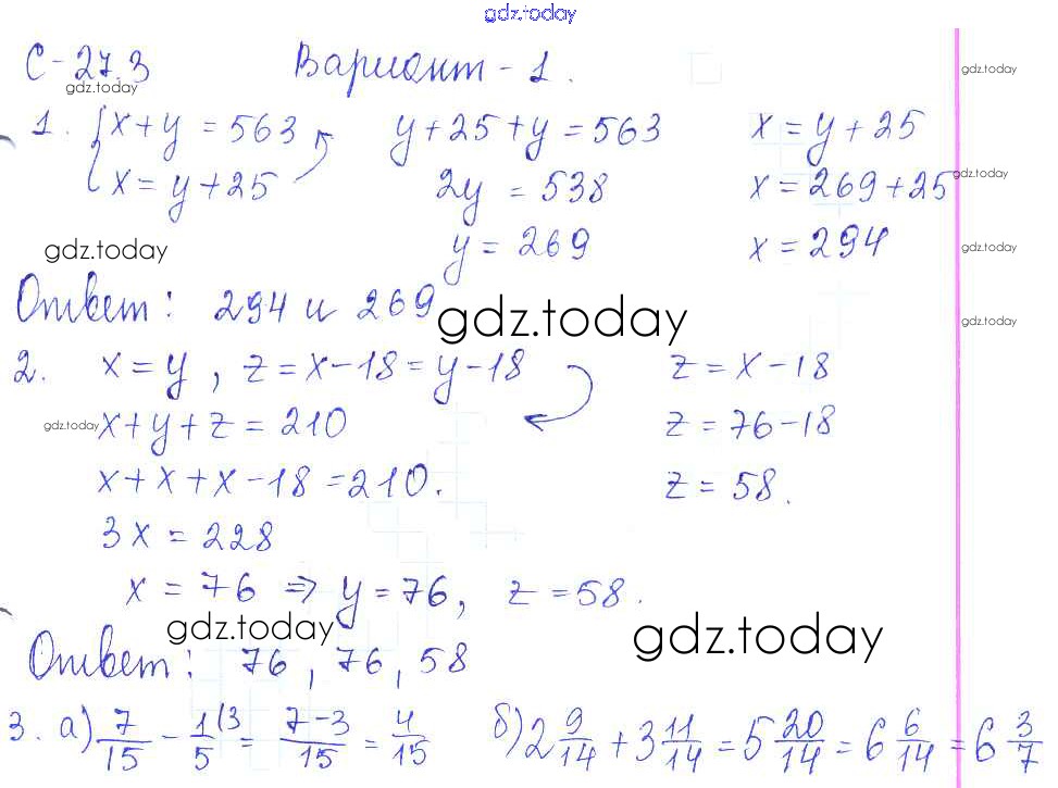 На страницах сайта gdz.today вы найдете учебный и вспомогательный материал, направленный на улучшения знаний школьной программы. ГДЗ - онлайн мир знаний Решение к СР-27.3 1 Самостоятельным работам по Математике для 5 класса Зубарева, Шанцева Мнемозина 2016