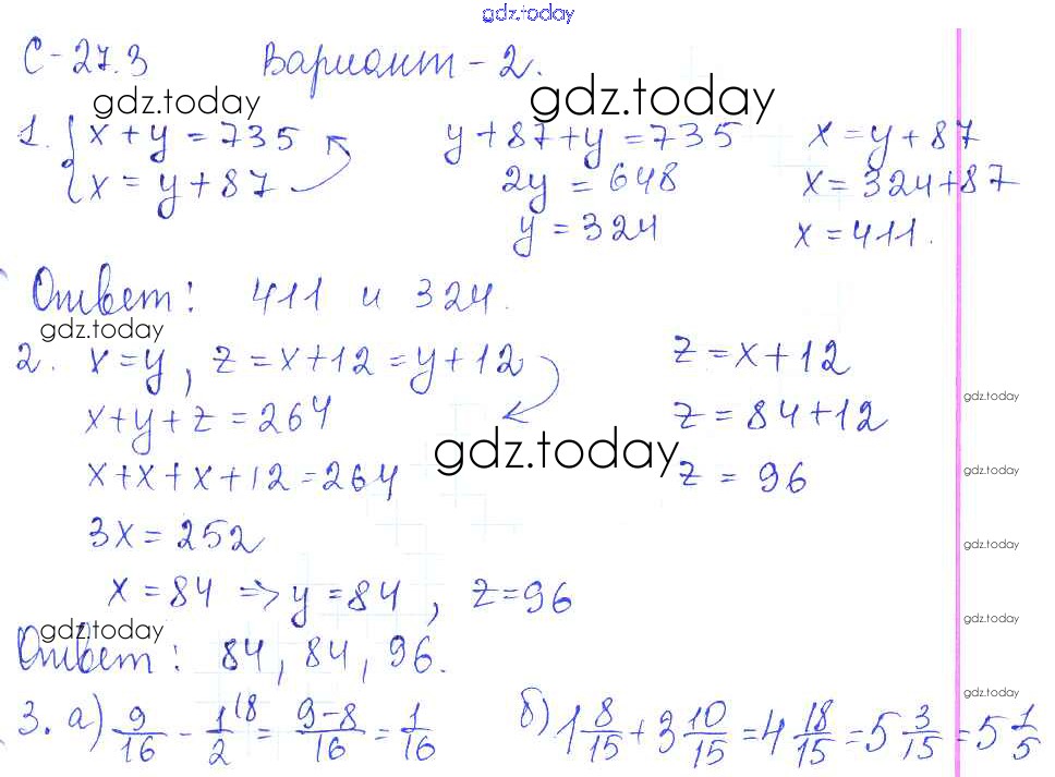 На страницах сайта gdz.today вы найдете учебный и вспомогательный материал, направленный на улучшения знаний школьной программы. ГДЗ - онлайн мир знаний Решение к СР-27.3 2 Самостоятельным работам по Математике для 5 класса Зубарева, Шанцева Мнемозина 2016