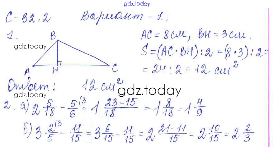 На страницах сайта gdz.today вы найдете учебный и вспомогательный материал, направленный на улучшения знаний школьной программы. ГДЗ - онлайн мир знаний Решение к СР-32.2 1 Самостоятельным работам по Математике для 5 класса Зубарева, Шанцева Мнемозина 2016