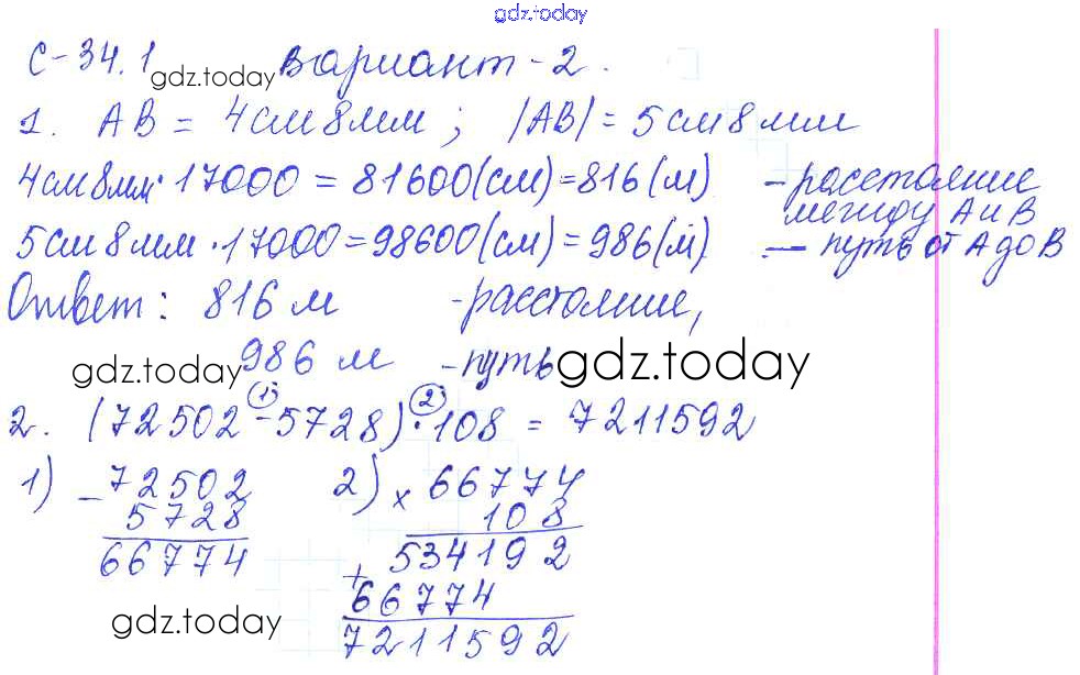 На страницах сайта gdz.today вы найдете учебный и вспомогательный материал, направленный на улучшения знаний школьной программы. ГДЗ - онлайн мир знаний Решение к СР-34.1 2 Самостоятельным работам по Математике для 5 класса Зубарева, Шанцева Мнемозина 2016