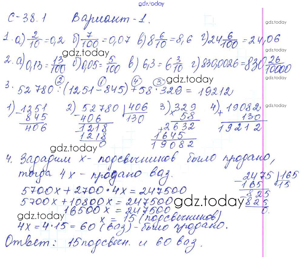На страницах сайта gdz.today вы найдете учебный и вспомогательный материал, направленный на улучшения знаний школьной программы. ГДЗ - онлайн мир знаний Решение к СР-38.1 1 Самостоятельным работам по Математике для 5 класса Зубарева, Шанцева Мнемозина 2016