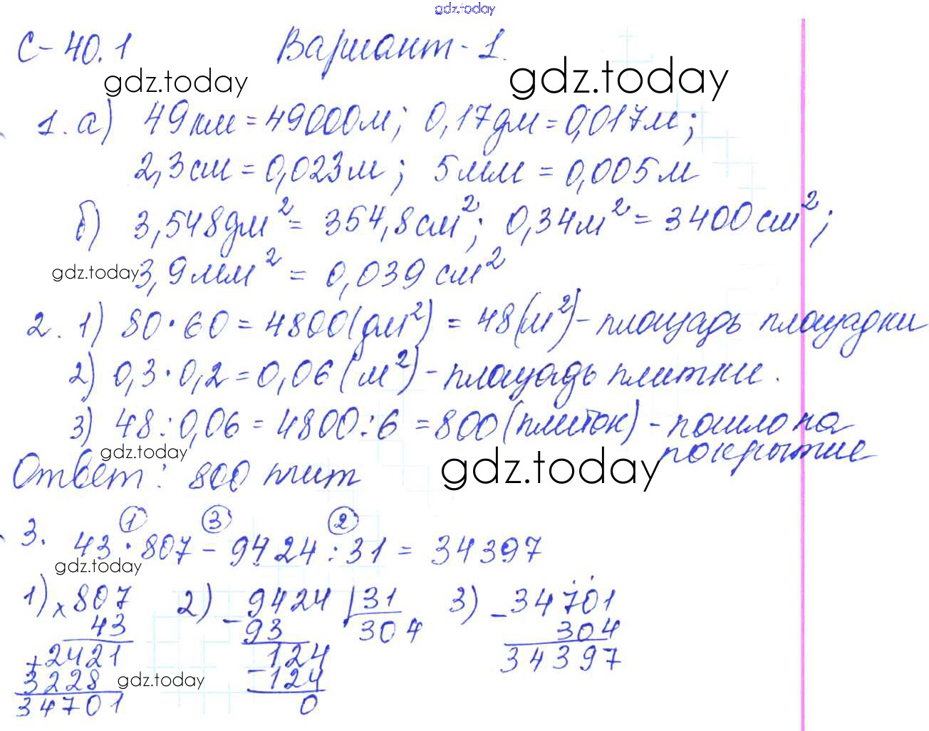 На страницах сайта gdz.today вы найдете учебный и вспомогательный материал, направленный на улучшения знаний школьной программы. ГДЗ - онлайн мир знаний Решение к СР-40.1 1 Самостоятельным работам по Математике для 5 класса Зубарева, Шанцева Мнемозина 2016
