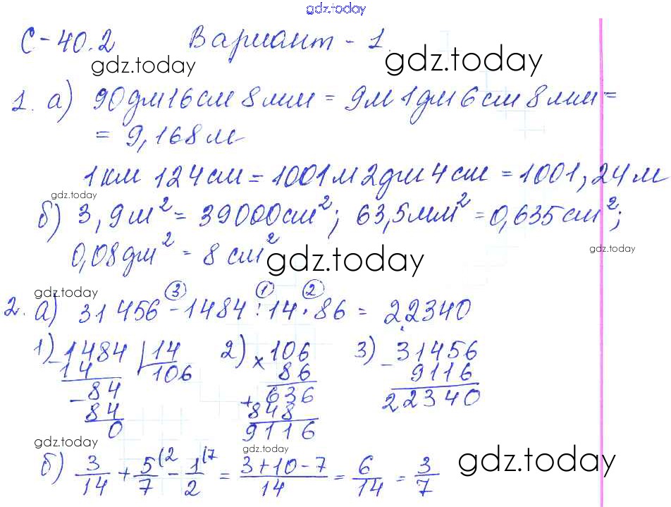 На страницах сайта gdz.today вы найдете учебный и вспомогательный материал, направленный на улучшения знаний школьной программы. ГДЗ - онлайн мир знаний Решение к СР-40.2 1 Самостоятельным работам по Математике для 5 класса Зубарева, Шанцева Мнемозина 2016
