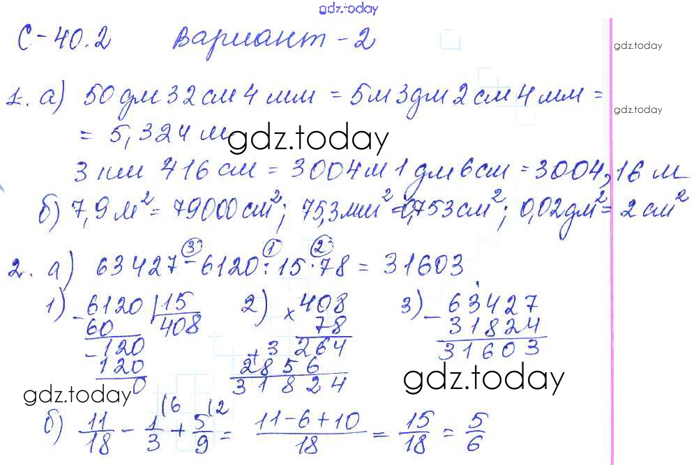 На страницах сайта gdz.today вы найдете учебный и вспомогательный материал, направленный на улучшения знаний школьной программы. ГДЗ - онлайн мир знаний Решение к СР-40.2 2 Самостоятельным работам по Математике для 5 класса Зубарева, Шанцева Мнемозина 2016