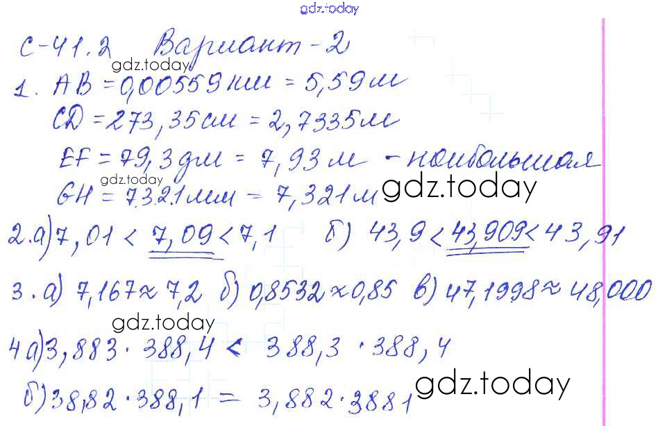 На страницах сайта gdz.today вы найдете учебный и вспомогательный материал, направленный на улучшения знаний школьной программы. ГДЗ - онлайн мир знаний Решение к СР-41.2 2 Самостоятельным работам по Математике для 5 класса Зубарева, Шанцева Мнемозина 2016